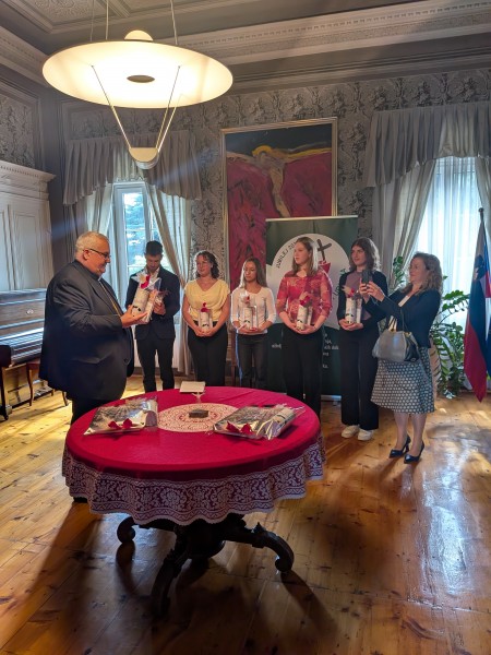 Največja nagrada vsakemu učitelju je zadovoljen učenec: da se je nekaj naučil ali da mu znanje, ki mu ga je uspel predati, na široko odpira vrata za naprej. Zato so občutki v pričakovanju maturitetnih rezultatov v trikotniku dijak – starši – učitelji zelo podobni. Hudo nam je, ko ne gre, in se veselimo uspehov. Letošnja matura nas je nagradila z obilo veselja: poleg dveh diamantnih maturantk, Neže Bucik in Tije Vidmar, so bili zlati še Žana Čeč, Ivana Glavač, Veronika Knafelc, Hana Mamić, Janez Muri in Kaja Simonič. Nekateri izmed njih so se (v družbi razrednikov in vodstva šole) že dopoldne na sedežu škofije v Kopru srečali s koprskim škofom, Petrom Štumpfom, popoldne pa v prostorih Občine Vipava z županom Antonom Lavrenčičem in se podpisali v zlato knjigo.