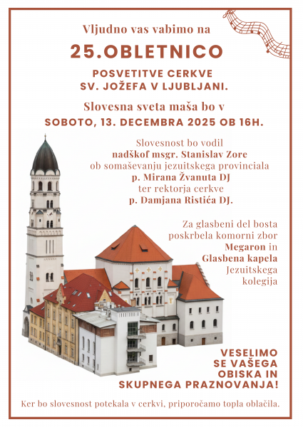 Vljudno vas vabimo na 25. obletnico posvetitve cerkve sv. Jožefa v Ljubljani.