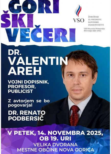 Gost večera bo dr. Valentin Areh, vojni dopisnik, profesor in publicist.