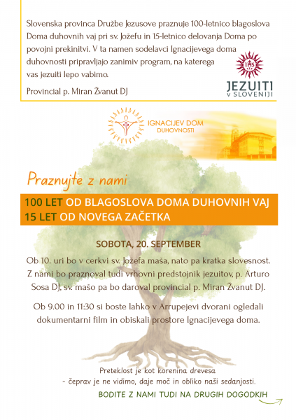 Vabimo vas, da se nam pridružite pri praznovanju dveh pomembnih obletnic: 100 let od blagoslova Doma duhovnih vaj in 15 let od njegove prenove.