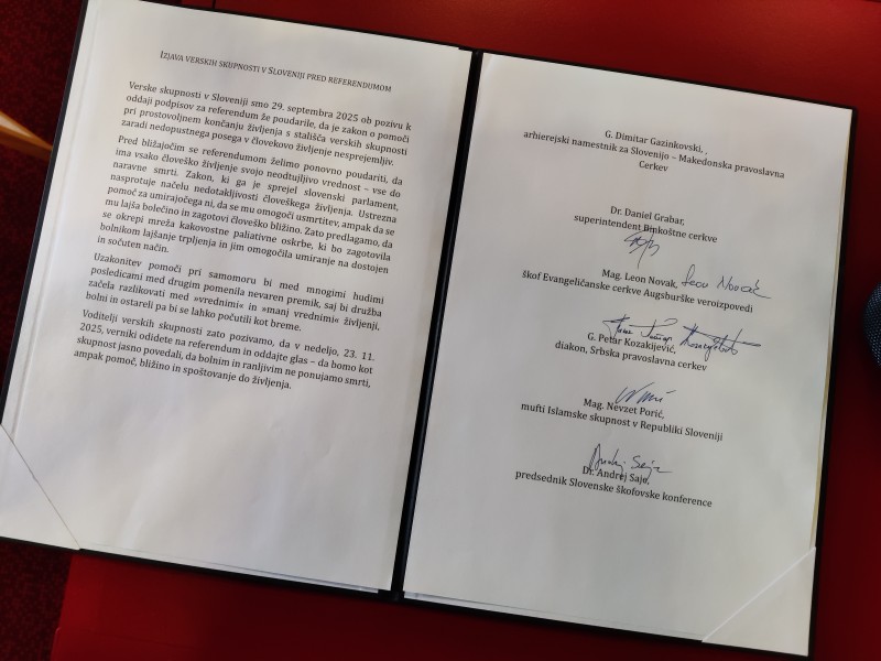 V sredo, 12. novembra 2025, je v prostorih Družine potekala tiskovna konferenca, na kateri so predstavniki verskih skupnosti predstavili izjavo pred referendomom o Zakonu o pomoči pri prostovoljnem končanju življenja.