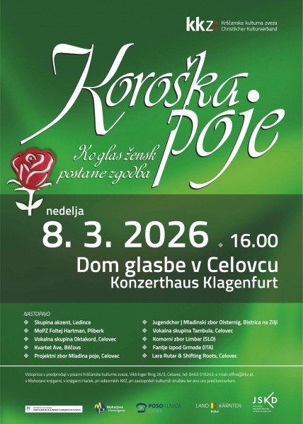 Krščanska kulturna zveza zopet vabi – tradicionalno od leta 1972 naprej – na osrednji koncert Koroška poje v Dom glasbe v Celovcu, ki bo letos kot poklon ženskam, ki nosijo, spremljajo in oblikujejo našo kulturo, na dan žéna, 8. marca.