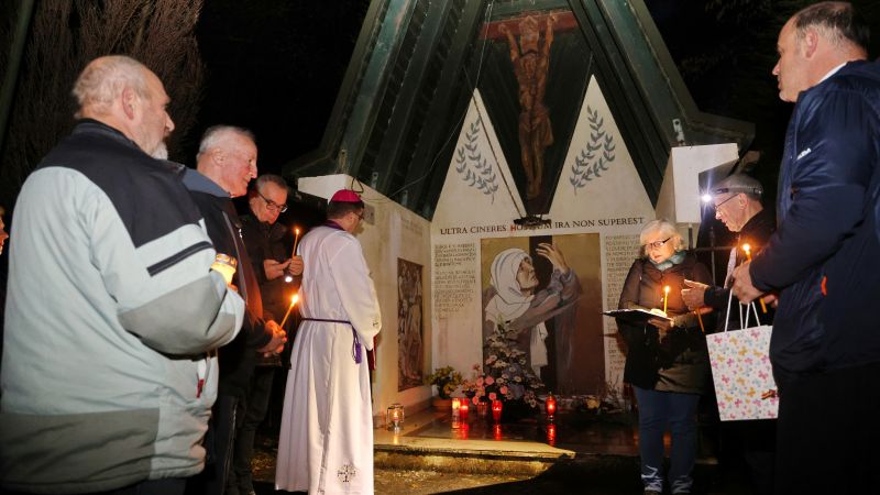 »Dragi, bratje in sestre, danes tukaj molimo na enem od tistih preko 700 morišč po naši domovini, kjer je morila bratova roka. Boga prosimo za večni mir, za spravo in za očiščenje. Ti kraji tudi danes kričijo. Et nemo percipit corde – In nihče si ne vzame k srcu. Ko je papež Benedik XVI. maja leta 2006 obiskal enega od takšnih krajev groze, je izrekel besede, ki veljajo nam danes, tudi v tem trenutku. 'Spomin na te krike pretresa naša srca. Noče pa v nas izzvati sovraštva, temveč sporoča, kako grozno in nečloveško je delo sovraštva. Ta spomin želi voditi naš razum, da bi prepoznali zlo kot zlo in ga zavrnili. Želi navdihniti pogum, da bi delali dobro, da bi se uprli zlu. Želi nas pripeljati do tistih občutkov, izraženih v besedah, ki jih je veliki Sofoklej položil na ustnice Antigone ob grozi, ki jo je zajela, ko pravi, tukaj nisem, da bi skupaj sovražili, ampak da bi skupaj ljubili'.