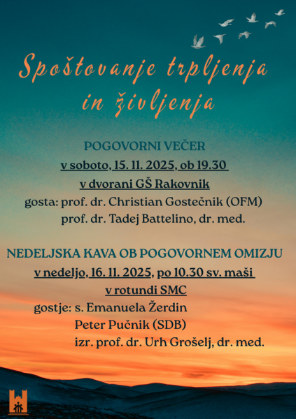 V nedeljo, 16. novembra 2025, po sveti maši ob 10.30 bo v rotundi SMC-Rakovnik sledila nedeljska kava s pogovornim omizjem na isto temo. Gostje omizja bodo sestra Emanuela Žerdin, salezijanec Peter Pučnik in izr. prof. dr. Urh Grošelj, dr. med.