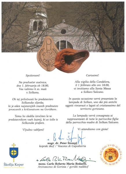 Ob tej priložnosti bo predstavljena solkanska oljenka, eden najstarejših znanih predmetov, povezanih s krščanstvom na Goriškem. Po predstavitvi bo sledila izročitev oljenke predstavnikom vseh župnij, ki so izšle iz Solkanske prafare. Vljudno vabljeni.