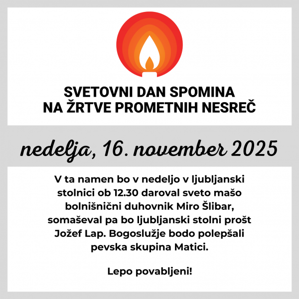 Tretjo nedeljo v novembru obeležujemo Svetovni dan spomina na žrtve prometnih nesreč – dan, ko se spomnimo vseh, ki so v prometnih nesrečah izgubili življenje ali bili poškodovani, ter njihovih svojcev in prijateljev.